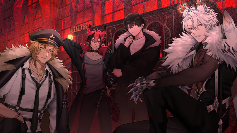 (Describes all of them working together and preparing to send out the letters to the public inviting them to the mansion.)“Don’t you think this kind of heading is too boring? It should have more impact!”“Not everything has to be bright and flashy to be exciting, Maou.”“Well, you only say that because you’re boring, Kuro. All your clothes are black!”“I hope everyone likes the letters. It’ll be good to have new souls at the Mansion again.”“Are you sure you have enough ink, Anju? You seem to be going through it rather quickly.”“Oh… I could use some more. Thanks, Hikaru.”Four men sit around a round table. Each one of them has a stack of letter paper and an inkwell in front of them. They’re penning letters to their next round of victims - human souls who will be invited to take part in Hysteria Manor’s mysterious and deadly games.One of them is white-haired and tall, with a wolf’s head on his shoulder and a tufted pair of pointed ears poking out of his hair. His name is Hikaru. He’s penning letters with a thoughtful look on his face, thinking deeply about what the new humans will be like.“You should focus on your pile,” Hikaru chuckles. “There aren’t any advisors here to shove all your work onto.”There’s a man lounging on the chair next to him. A pair of curved horns juts through the red streaks in his black hair. When he speaks, his sharp fangs flash and glint in the low light. His name is Tempo Maou. Paperwork isn’t his strong suit - he’s ignoring the stack of papers assigned to him on the table.“Hmph, this part is lame. Call me back when the humans get here.” Maou tilts his chair back, grinning casually. “I’ll easily kick all their asses and steal their souls for the Mansion!”Beside him, a blond man with lion’s ears scratches his head, deep in contemplation - he’s thinking about which of the letter recipients might want to join his airship crew. The scar over his nose is clearly visible even in the dim light. His name is Anju. His green eyes gleam with focus.“We have to invite them properly, you know! Without invitations, you won’t have anyone to play with,” Anju chides, signing another letter with a flourish.The last one at the table is a black-haired man with a feather earring. His usually-blank expression is slightly pinched with seriousness as he diligently sorts another stack. His pupils are piercingly grey. His name is Kuro. He frowns and looks across the table.“You should act more responsible in front of our guests, Maou. They’re fighting for their lives, you know,” Kuro says.Maou rolls his eyes. “Who cares? They knew the risks going into this. If we win, we get their souls - if they win, they get to make their deepest desire into reality.” He sticks his tongue out and grins. “Just try to keep up with me this time. I farmed way more than you, Kuro.”“Don’t fight,” Hikaru sighs, folding one more piece of paper and slipping it into an envelope. “We want to make sure our guests have a good time, right?”Maou laughs. “Oh, they’ll have a good time, alright. We’re the villains of Hysteria. They’ll be having so much fun that they’ll be screaming for more.”Kuro gives a put-upon sigh - Anju laughs. “I pity the players who’ll end up challenging your floor, Maou!”Their friendly chatter fades away, full of gruesome discussion about the devious plans they each have for their awaited guests.One letter slips through someone’s fingers and flutters to the ground. It sits there, innocuous, waiting to be picked up again - waiting to be mailed out and received by a lucky challenger who will be invited to test their skills, at risk of losing their soul, at the infamous Hysteria Manor.And… oh? How interesting.